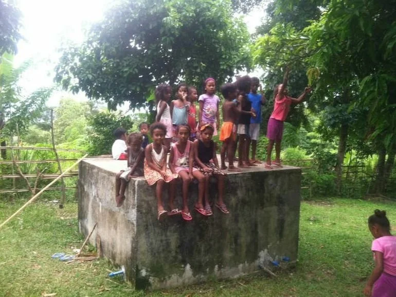 These Ati children are playing on a concrete water tank. Currently water must be carried to over a 100 homes in two villages from long distances. Wells are contaminated and springs and other sources are often unsafe and unreliable. Babies and children are regularly sickened with water-borne disease, as well as the elderly and those fighting other diseases like TB. We are working to secure safe and easily accessible water for the community.